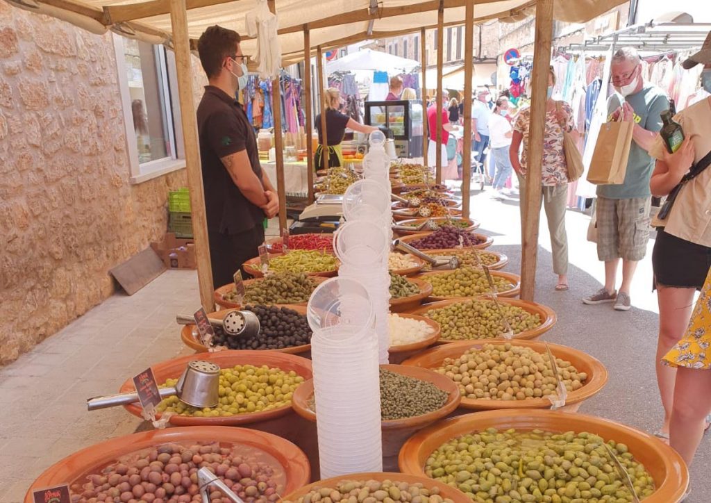 Jeden Mittwoch und Samstag findet in den Gassen der historischen Altstadt von Santanyi der Wochenmarkt statt. Rund um den Marktplatz Plaza Mayor und der hübschen Kirche Sant Andreu gibt es hier neben frischen lokalen Produkten wie Obst und Gemüse auch Kleidung, kreatives Handwerk und das originale Salz aus den naheliegenden Salinen zu kaufen. Nach dem Bummel über den Markt laden die vielen kleinen Cafes und Restaurants zu einem späten Frühstück oder Mittagessen ein.